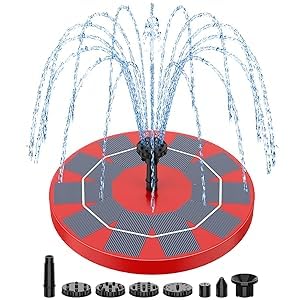 – 【6 VERSCHIEDENE DÜSEN-TYPEN】Der Solarbrunnen ist mit 6 verschiedenen Düsen ausgestattet, um Ihre unterschiedlichen Anforderungen an Strahlhöhe oder Strahlform zu erfüllen. Sie können die Düse leicht ändern, um die gewünschte Sprühform zu erhalten und die Höhe durch Ändern der Düse anzupassen, um ein Überlaufen des Wasserbeckens zu vermeiden.