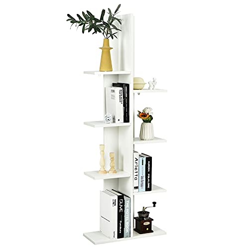 Giantex Bibliothèque Étagère Rangement à 8 Niveaux, Bibliothèque en Forme Arbre Peu Encombrant Présentoir Autoportant pour Livres, Plantes, CD, 50x20x141 CM, Blanc