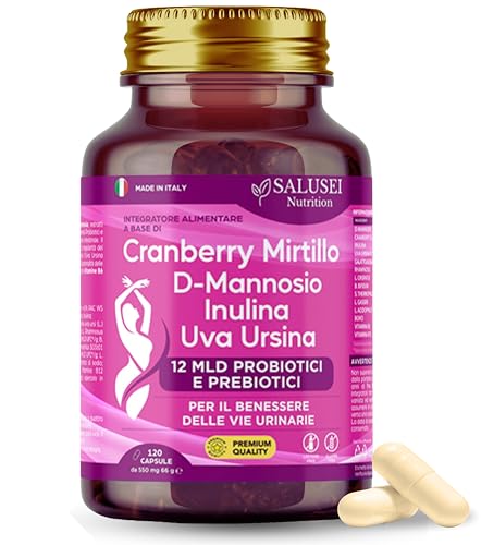 pubblicitàSALUSEI 120 Capsule Probiotico Donna Integratore D-mannosio Cranberry Mirtillo Con Vitamine, Coenzima Q10 E Uva Ursina, Inulina, Probiotici Prebiotici, Supporto Cistite e Benessere Delle Vie Urinarie