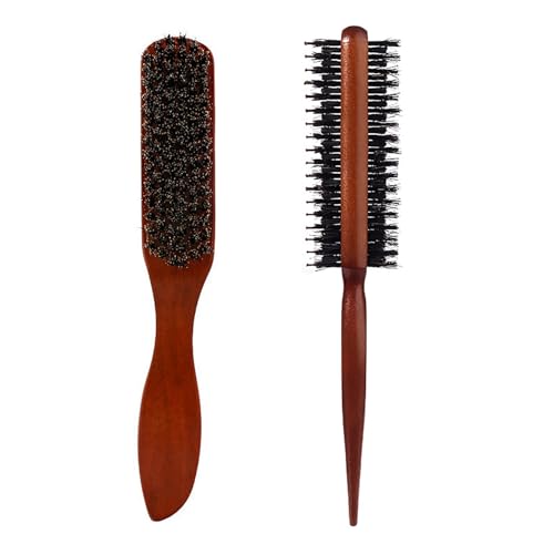 Publicidad iCovalescent 2 Stück Wildschweinborsten Bürste, boar bristle brush, Toupierbürste mit Holzgriff, für Langes, Dickes, Lockiges, Welliges, Trockenes Oder Geschädigtes Haar, Alle Haartypen