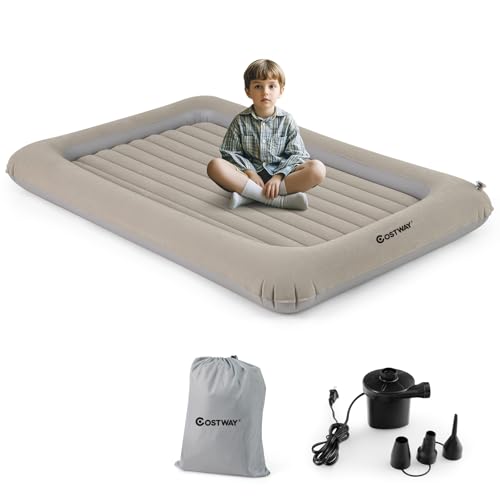 publicitéCOSTWAY Lit de Voyage Gonflable Enfant avec Matelas Pneumatique & Amovible, Lit Gonflable en PVC avec Sac de Transport, Rebords Surélevés, Charge 150kg pour Enfant de 18-24 Mois (Gris)