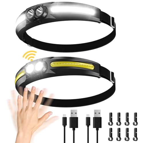 WerbungMoKo 270° Wide View LED Stirnlampe, Kopf-Taschenlampe wiederaufladbar, IPX4 wasserdicht leichte Stirnlampe mit langer Laufzeit-2500mAh, 7 Modi mit Bewegungssensor für Laufen Camping Angeln, Schwarz