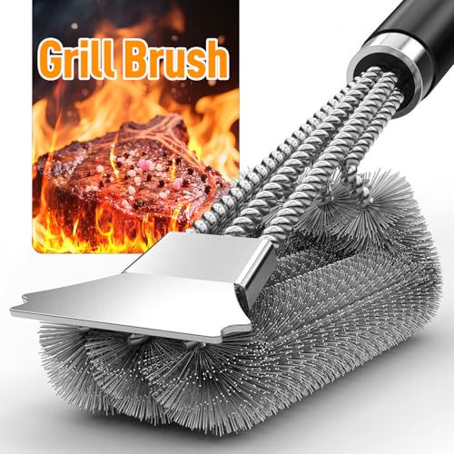 Grillbürste, Grill Reinigungsbürste Edelstahl Schaber, Holzkohlegrill, Kugelgrill, Elektrogril, Grillrost, Extra Langer PP Griff, für Gasgrill, dichte Edelstahlborsten, Pinsel