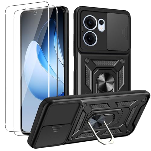Publicidad MEMELOKA Funda para OPPO Reno 13F 5G/Reno 13 FS 5G + Cristal Templado, Armor Carcasa Militar Antiarañazos con 360° Soporte de Anillo, Antigolpes Carcasa con Cubierta de Cámara Deslizante, Negro