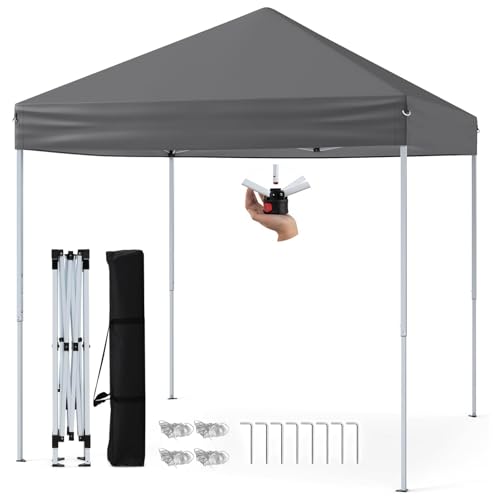 publicitéRELAX4LIFE Tonnelle Pliante 2×2 M Pop-up, Barnum Pliant Facile à Monter pour Camping/Jardin/Terrasse, Gazebo 2×2 avec Sac de Transport, Hauteur Réglable, Piquets & Cordes Inclus, Gris