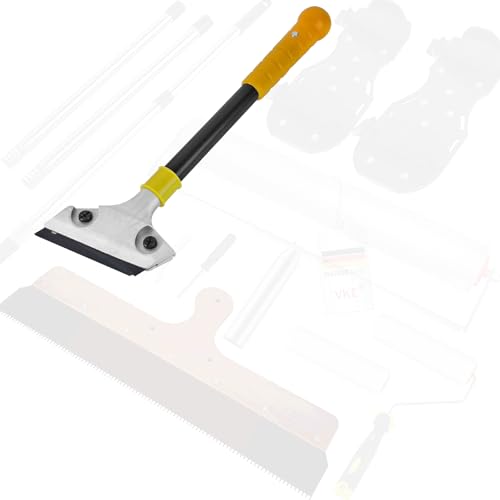 – VKE Kit Ragréage, Rouleau Debulleur Ragreage 50 cm avec Pare-Éclaboussures, Râteau Autonivelant 56 cm, Chaussures à Pointes, Perche Telescopique 162 cm (une seule Grattoir Vitre)