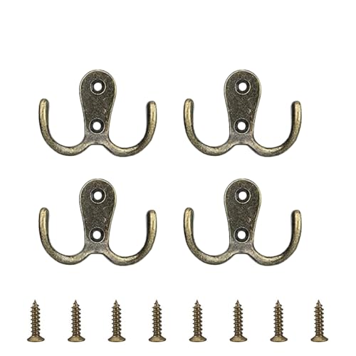DikGifk 4er Set Kleiderhaken Vintage Bronze, Massive Metall Doppel-Haken Wandhaken Schwerlast, Retro Garderobenhaken mit Schrauben für Garderobe Tür Küche Schrank Badezimmer