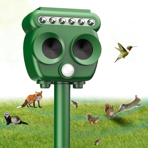 – 【Advanced PIR Motion Sensor & Ultrasonic Deterrence】 Our ultrasonic animal repeller is equipped with sensitive infrared PIR motion sensors that automatically detect animal movement and trigger powerful ultrasonic waves. It effectively drives away unwanted intruders like cats, dogs, raccoons, deer, squirrels, and more, protecting your plants, gardens, and properties without causing any harm to animals or humans.